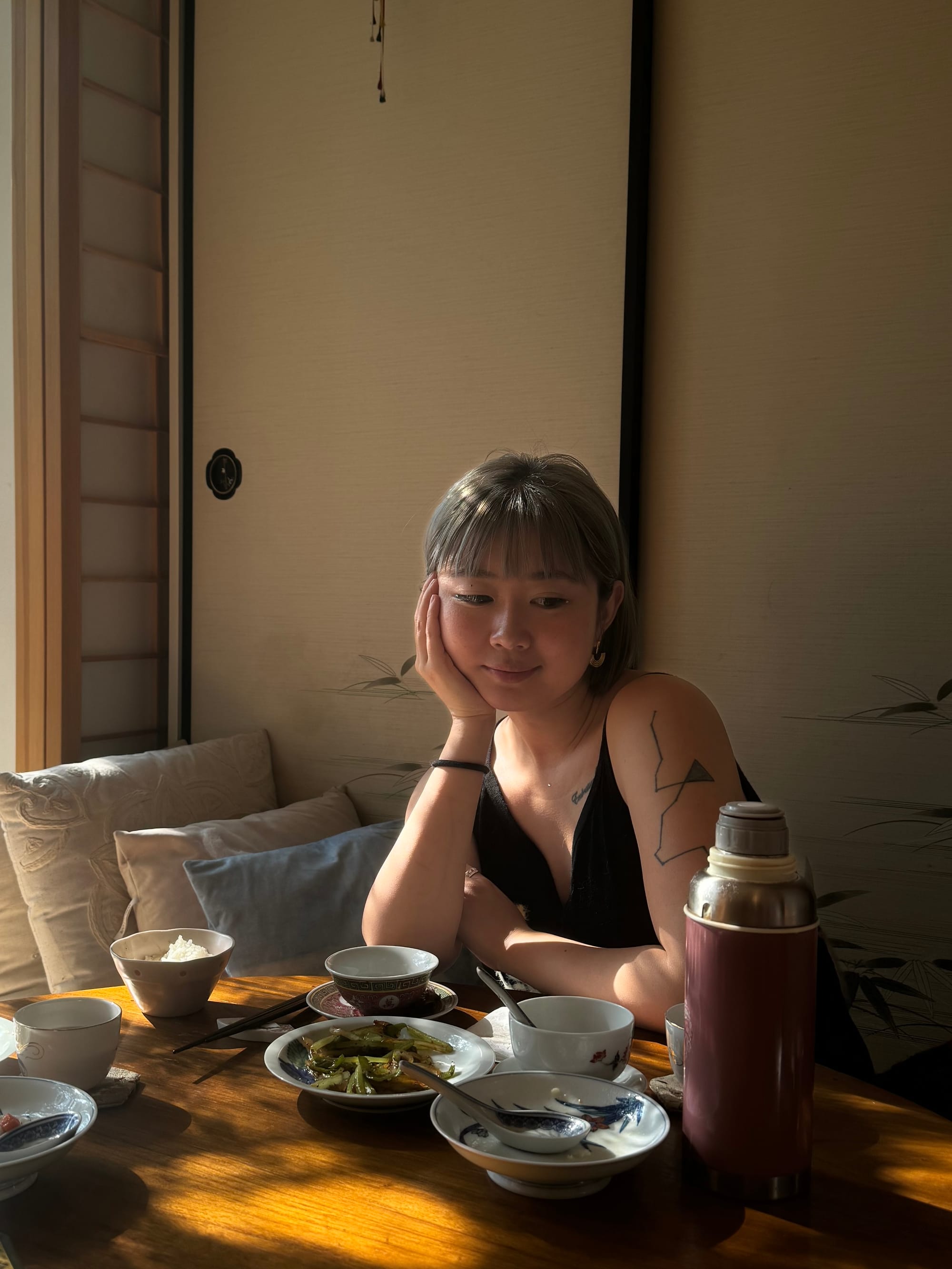 Nai Nai gave me my first menstrual pad when my period came on a summer day in fourth grade. The red was not even red. It was this dark brown clot in my underwear, like a small chunk of dark chocolate. I saw this right before my gymnastics class when I went to the toilet. A small panic attack - even though I had no idea that it was a panic attack - hit me. My head got dizzy. I skipped the class, lied about me having a stomach pain and took a bus home first thing. Nai Nai was surprised that I got home early, because she would usually pick me up. I told Nai Nai what happened, and I probably cried a little. She scolded me for being a “coward cat” - she probably invented that word herself - yet she still gave me the pad and taught me to use it: “It's just blood. You are a big girl now.” She looked at me. I started to shiver. Then she left home to participate in her weekly opera group, in her bright red dress with white dots, glittering in the golden hour sun. She would always play the male character in those opera plays. I was left home alone, thought the world was over and I was dying. I did not know where my grandpa went. Memories could be deceitful, maybe he was there but he was so quiet and dull that I forgot he existed. Later I learned that it was Nai Nai that made growth scary, because I did not want to grow up to be like her.