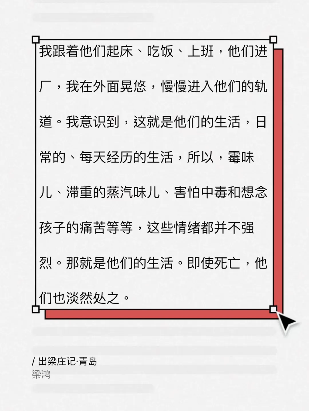 梁鸿:我之前在西安、青岛采访梁鸿:我写《出梁庄记》的时候,去采访在西安、青岛打工的梁庄人,去之前完全没有预设,因为不知道他们是怎么生活的,到了之后突然发现有那么大的落差,他们居住的房屋条件、工作的环境那么差,他们经历的生活完全是一种江湖,在其中争夺生活空间。我就非常地震惊。所以还是情感的部分不好处理。那怎么办?这样我的写作不就很容易被我的情感和情绪牵着走了吗?