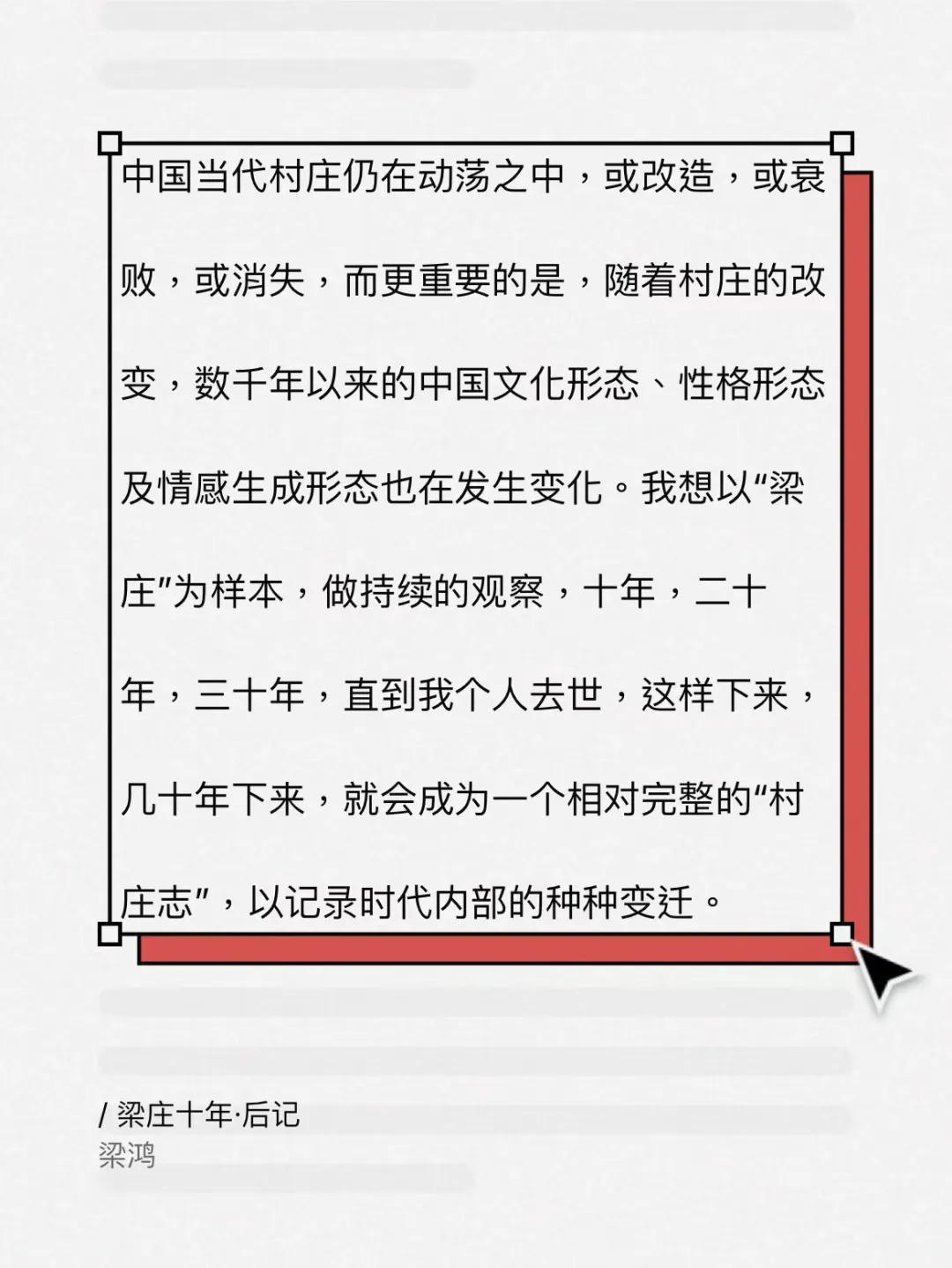 梁鸿:哎,其实没有规划。我觉得生活是不断涌现在我面前的。我之前不知道自己要写《梁庄十年》,写完之后突然发现,哦,我还可以再写,因为还有那么多人的故事还没有被我写下来。所以对于十年之后我到底要写什么,我还不知道,但是一定会有新的人让我写,因为生活在不断地行进,梁庄里的人的生活也在不断变动。我自己也充满了好奇:我要写什么?我会写成什么样?我的写作也是未知的、变动的。这都很有意思。