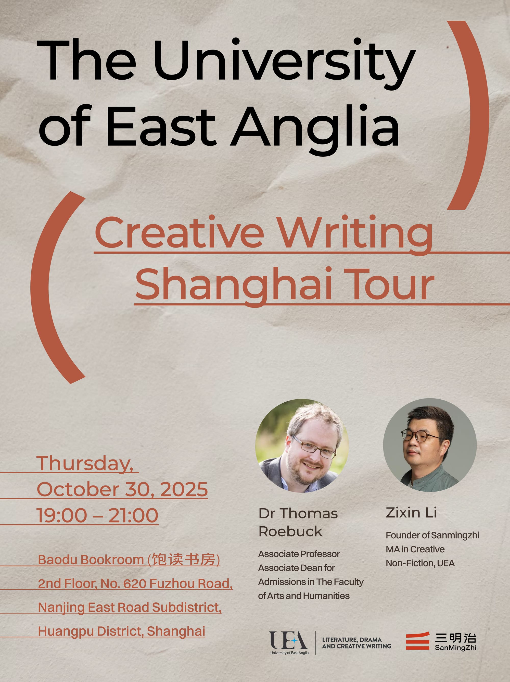 This exclusive session will feature Dr. Thomas Roebuck from UEA’s School of Creative Writing, who will be joining us in Shanghai to offer an in-depth exploration of the core values and unique strengths of UEA’s world-renowned Creative Writing program.